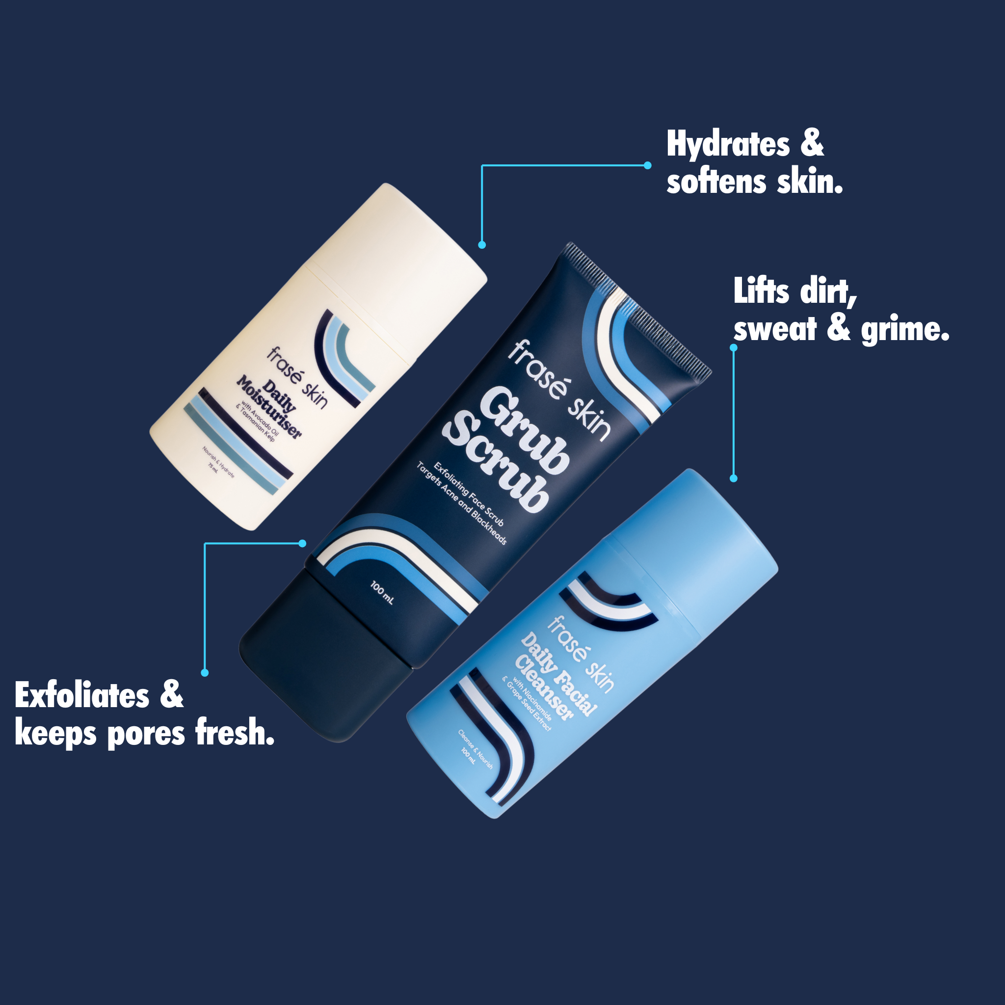 Not at all. It’s just 3 simple steps — Cleanse, Scrub, Moisturise. No complicated steps or extra products needed.