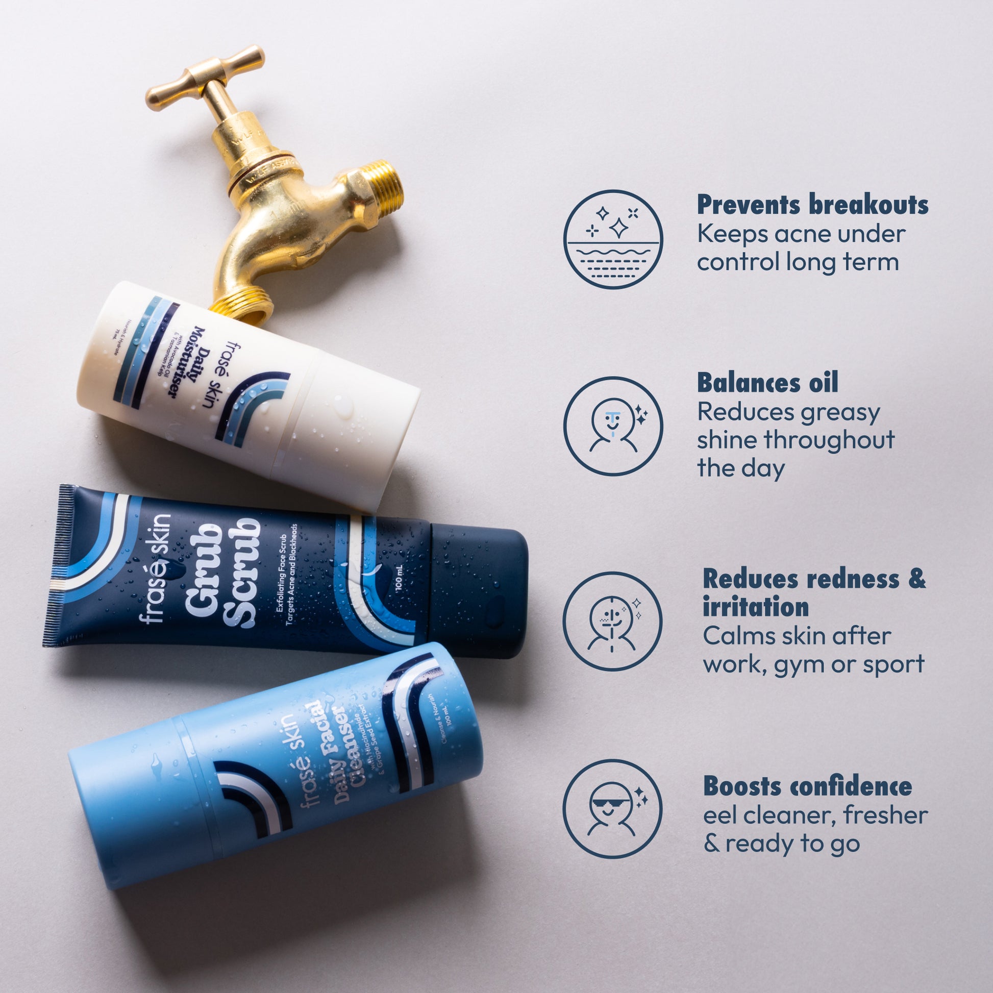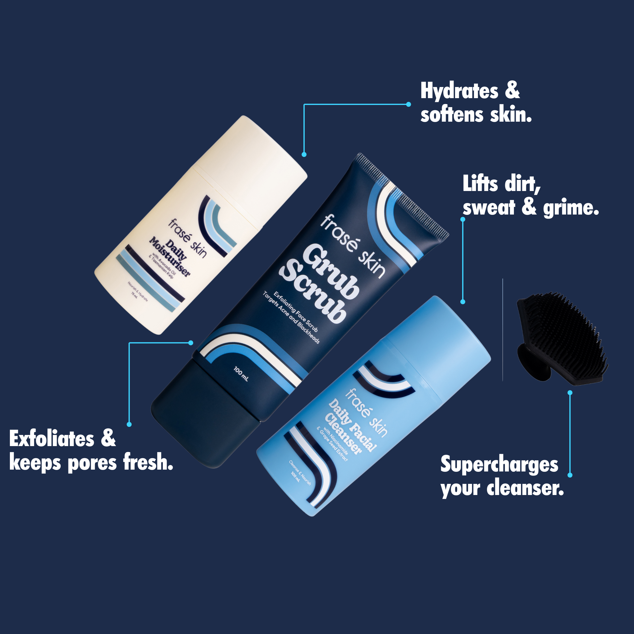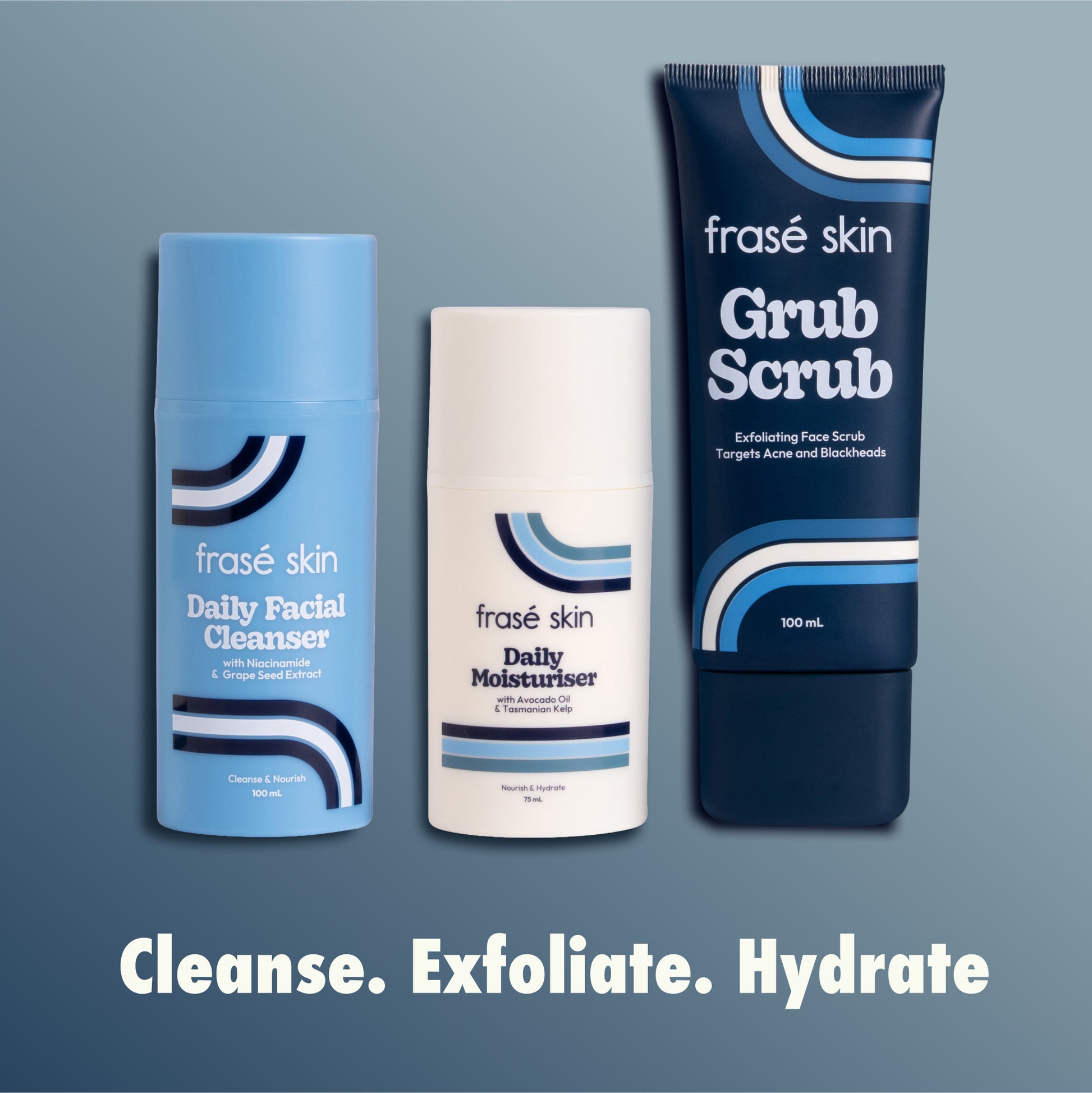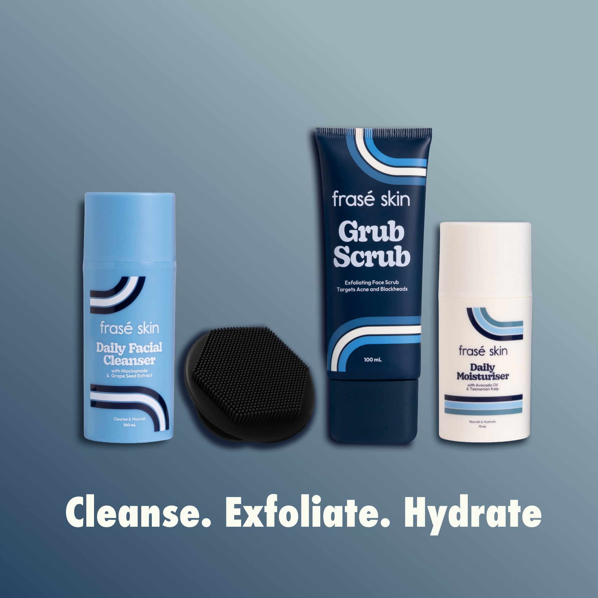 Nope. Our cleanser and moisturiser are gentle and hydrating, so your skin feels soft and healthy instead of stripped.