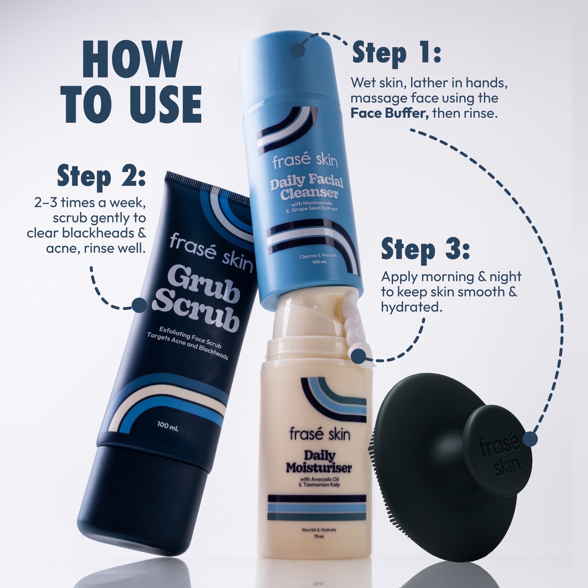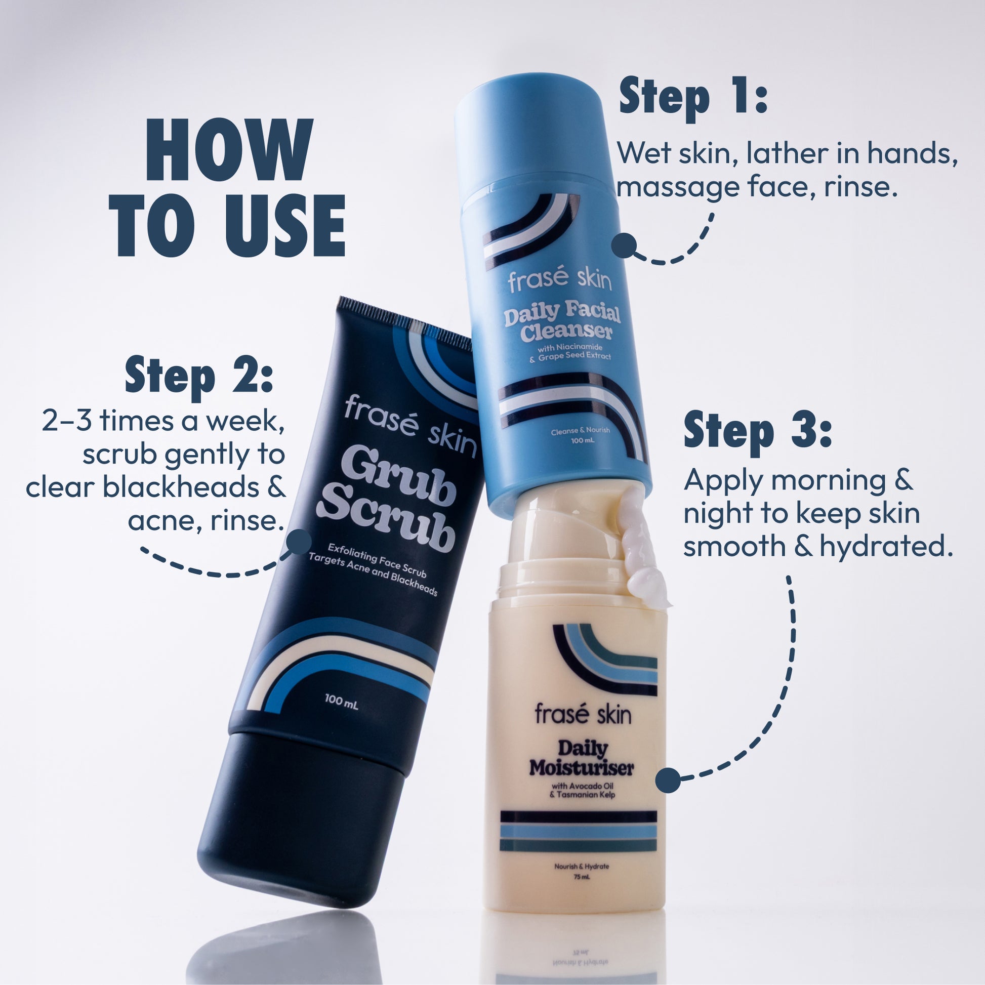Not at all. It’s just 3 simple steps — Cleanse, Scrub, Moisturise. No complicated steps or extra products needed.