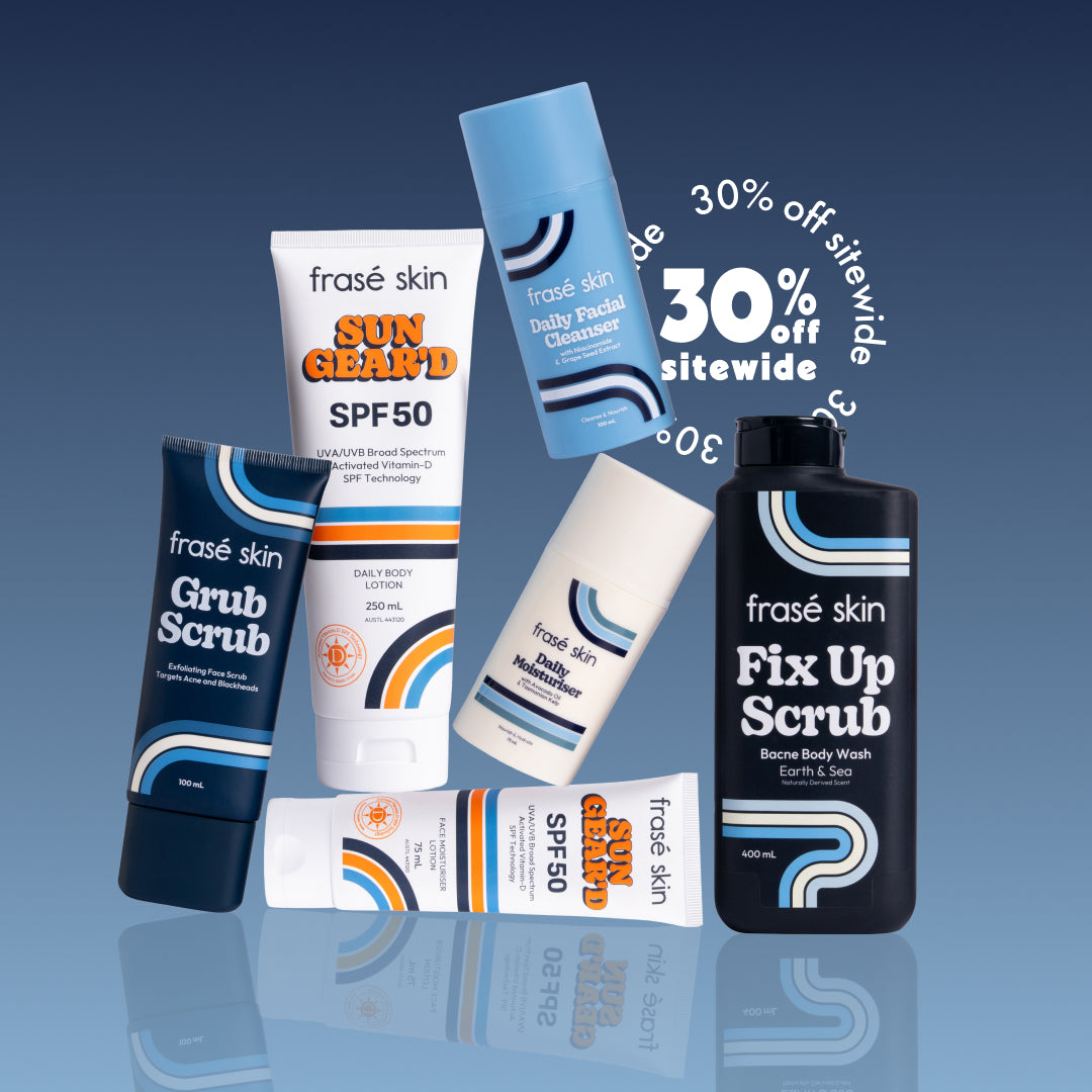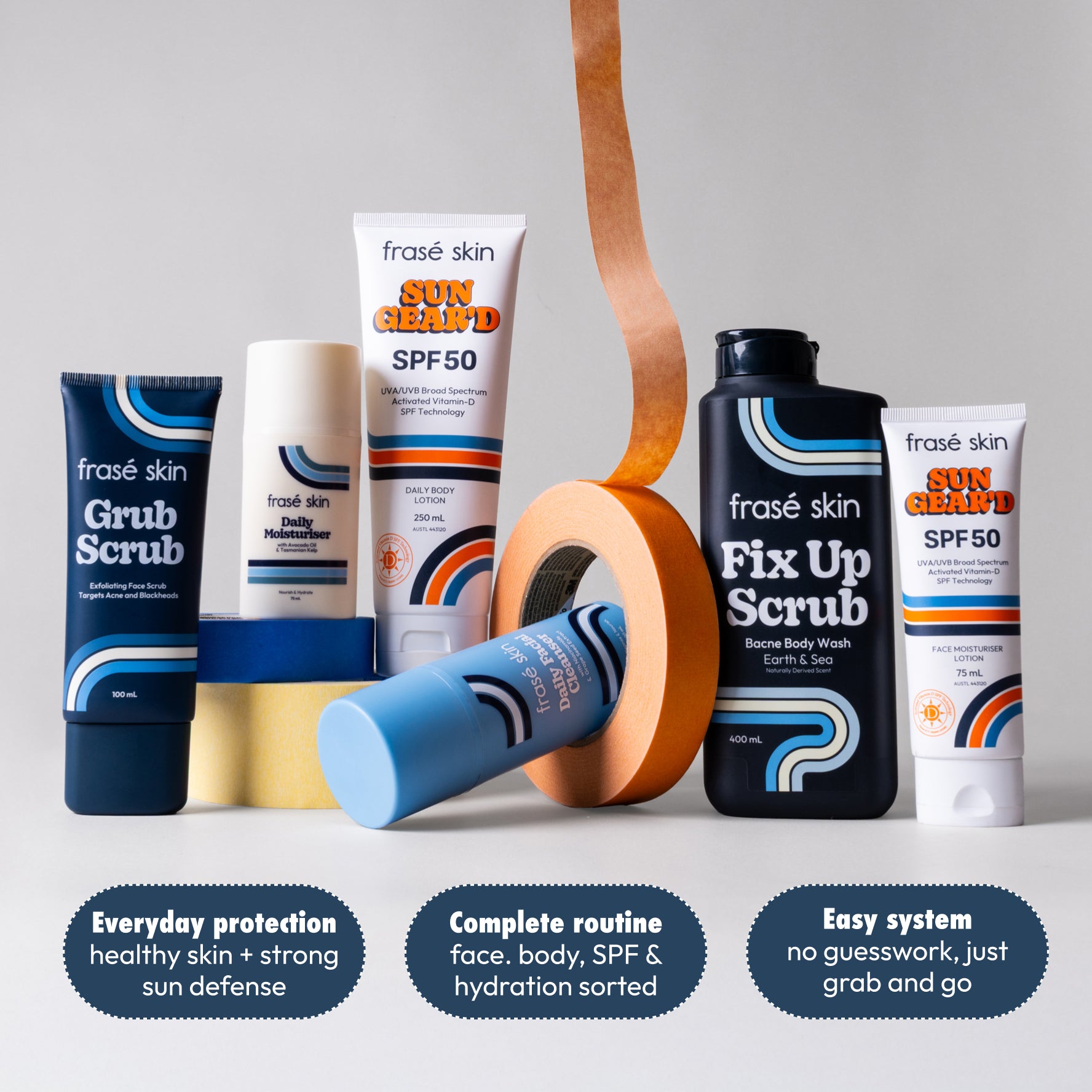 Yep. Use the cleanser, moisturiser, and SPF every day. The Grub Scrub a few times a week, and the body wash whenever you shower.